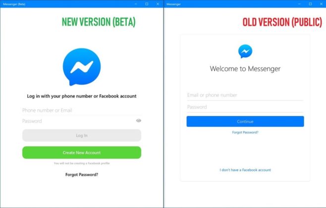After installing today’s beta update, you will be able to login to the Messenger with your phone number and can now also create a new account from the settings page of the app.
